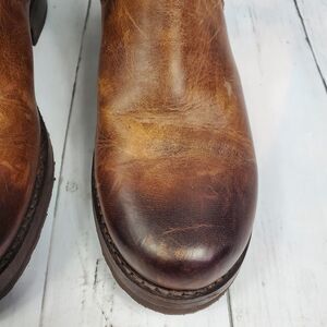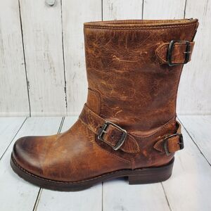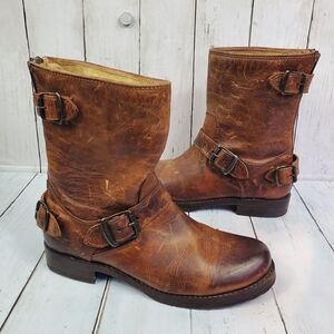 Frye 'Veronica' Back Zip Moto Boot Brown Women's Size 7B Leather Distressed GUC