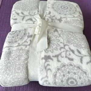 Print Throw in grey and white. 100% polyester washable throw blanket. Super soft and brand new never unfolded!