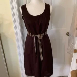 Beautiful 100% linen, chocolate brown Banana Republic dress. Fully lined with pockets. Has a really pretty ribbon belt that can be taken off. Has pretty detail on the hem. Please see pics. Excellent, like new condition. Worn once! Size 6