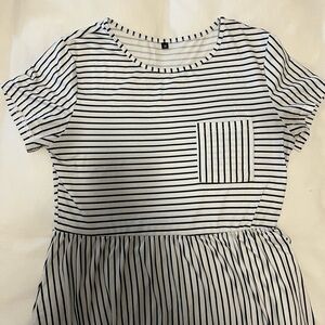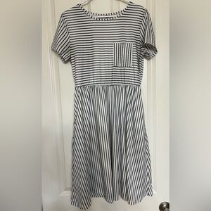 Black and White Striped Dress with Pockets - Size M