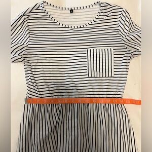 - Black and White Striped Dress with Pockets