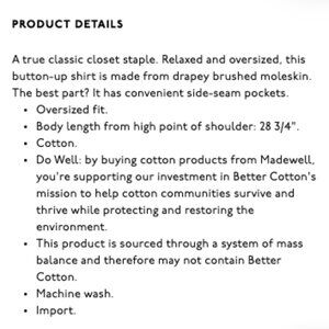 A true classic closet staple. Relaxed and oversized, this button-up shirt is made from drapey brushed moleskin. The best part? It has convenient side-seam pockets.
