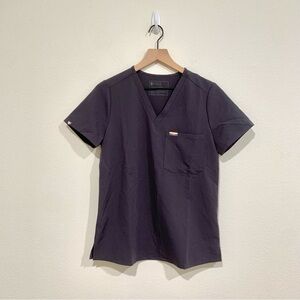 Pride Catarina one-pocket scrub top in charcoal gray • rainbow detail • NWT