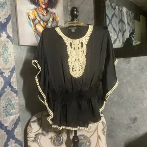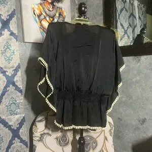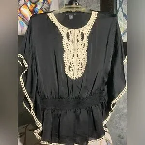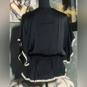Good Condition. Black Satin Embroidered Blouse. Very Pretty 😍. Lightweight Fabric. Size Medium. All Sales Final. No Returns.