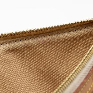 Condition: Well Loved - Heavy darkening and wear to exterior bottom corners. Light marks and discoloration throughout exterior coated canvas. Moderate darkening, marks, and scuffs throughout exterior leather trim. handles, and shoulder strap. Visible darkening and marks throughout zipper tape. Surface scratches to hardware. Marks and light fading throughout interior.