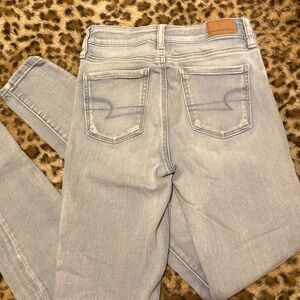 Women’s American Eagle Outfitters Long White Washed Blue Skinny Jeans Size 0