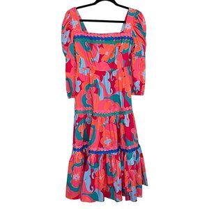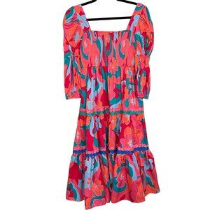 Alden Adair Boho Midi Mia Trippy Dress Pockets Puff Sleeve Size Small NWT