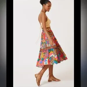 Anthropologie Farm Rio Printed Patchwork Midi Skirt