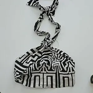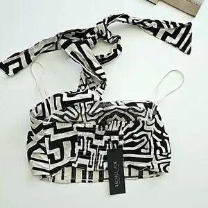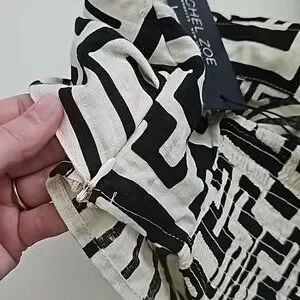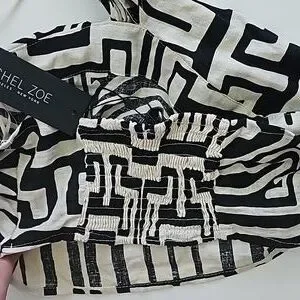 Black and cream color top great for vacation ties around the neck.. side zipper and smocking on the back