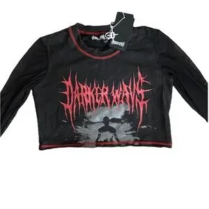 Darker Wavs DollsKill | NWT’s cyber Y2K mesh cropped graphic gothic grunge top