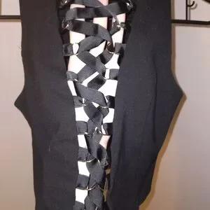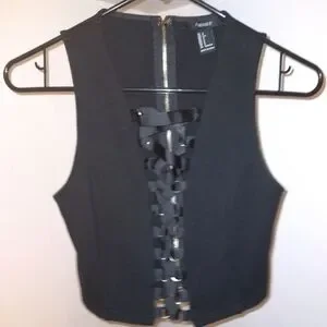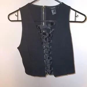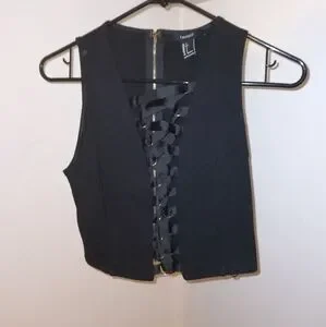 Awesome top from Forever 21 in great condition! Zipper on the back. Never have to thread it. Gold hoops. GREAT FIT. Double lined. I'd wear this for ever but I'm turning 40 soon. lol