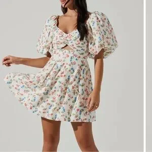 ASTR the Label Serilda Floral Puff Sleeve Pleated Minidress!!