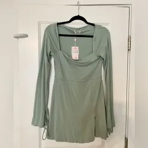 Square Neck Long Sleeve Mini Dress. Size 10. Color sage