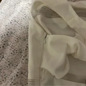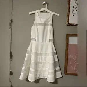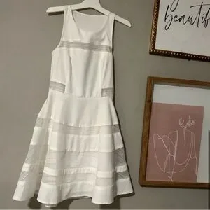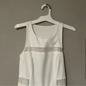 LuLu’s Coveted Curated Collected White Stripe Mini Dress with Mesh Detailing, Size Small