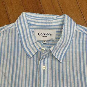 Huckberry Corridor New York Striped Seersucker Shirt Size Large L Short Sleeve
