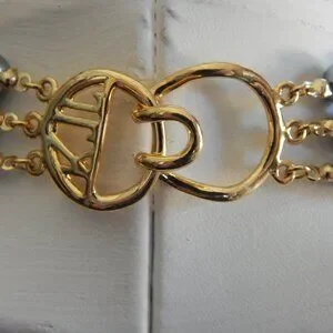 This lovely necklace features grayish/blue faux pearls in 3 separate strands and is a Kenneth Jay Lane creation. Each round pearl is knotted in between and the necklace is finished off with a hook style clasp in gold plate. It is very nicely made and ready to wear for any occasion. Total length is 18" and it falls gracefully at the neckline.