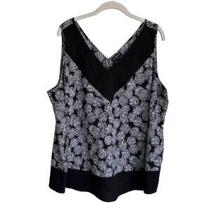Lane Bryant Sleeveless V-Neck Top in Black / White - Size 20