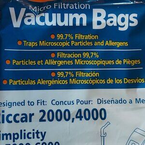 Riccar 2000 4000 and Simplicity 5000 6000 Type A Vacuum Bags Microfiltration