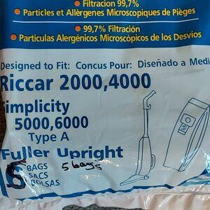 Keep your vacuum cleaner working at its best with this pack of high-quality vacuum bags. Designed to fit Riccar 2000, 4000, and Simplicity 5000, 6000 models, these bags are made from durable paper and feature microfiltration technology to effectively trap dust and other particles. With a package quantity of five, you'll have plenty of replacement bags to keep your vacuum running smoothly for weeks to come.