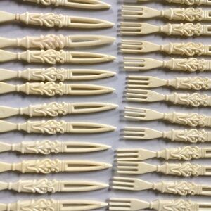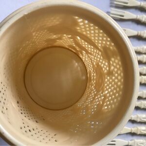 Vintage: Faux Ivory Rose & Lattice Holder ~ Cocktail Forks.