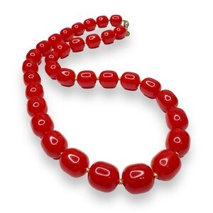 Bright cherry red lucite beaded necklace.