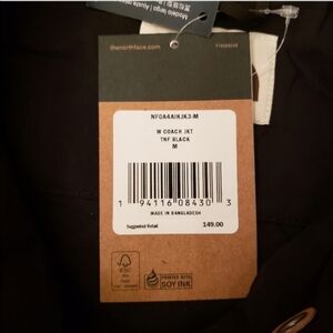 North Face women's black coach collard jacket. With wind wall technology. New with tags! Excellent condition! Size medium, chest 22.5", and length 23.5". Front pockets button close. The sleeves have buttons to synch them smaller. Full button down the front. Windbreaker material with lining. Please ask if you have any questions! Bundle for discounts!