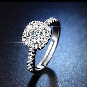 Absolute gorgeous timeless design Cushion Halo Round Cut Center stone with stoned half band and special crowning Super sparkle This ring was custom made by one of my friends who is a jewelry maker. She was supplied with high-quality CZ crystals to design them. This is one of her limited rolled out products. DESIGN Halo: Cushion Halo Solitaire: Round cut centre stone Band: half-stoned (for comfort wear) MATERIAL: Sterling Silver band stamped S925, cubic zirconia stones Solid rigid band design SIZE: Resizable (discreet band design) MEASUREMENTS Overall crown: (approx.) 9.1mm dia. Centre stone: (approx.) 6.4mm (1.13ct) Halo: W1.6mm Stoned band: W1.2mm, Non-stoned band: W1.4mm Weight: 3g Total: 1.65ct Last picture is customers throwback photos Brand New, nothing engraved, manufacturer ring pouch/box included