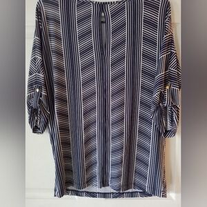 women's blue and white striped dress shirt. Great condition worn a few times, no rips tears or standing, size small. refer to pictures for more details