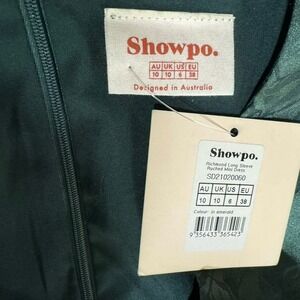 NWT Showpo RICHMOND JACQUARD FLORAL LONG SLEEVE RUCHED MINI DRESS IN EMERALD GREEN Size 6