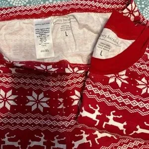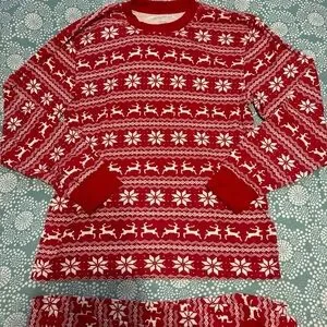 Pottery Barn Kids Adult red and white fair isle PJs in size large. Gently used. Matching kids set listed in size 2T.