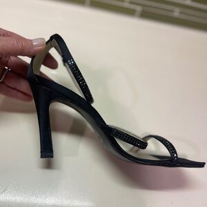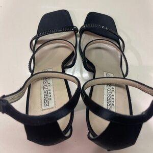 Ernesto Esposito Black Sateen and Rhinestones Strappy Sandals sz 37.5