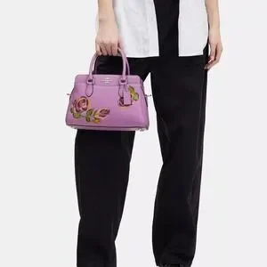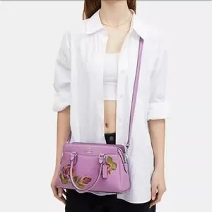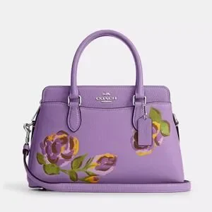 NWT Coach Mini Darcie Carryall With Rose Print/Pebble Leather/ Purple