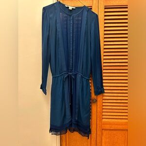 Diane Von Furstenberg New Slice Long Sleeved Heron Blue Silk Dress Size 0