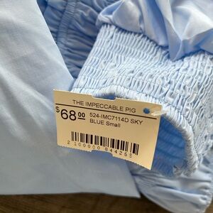 New with tags, never worn! Retail $68. The Impeccable Pig boutique brand dress. “feeling blue dress” Puff sleeves. Smocked bodice. Short dress. Light baby blue sky blue color. Size small. Perfect for spring or summer for any special event!