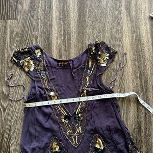 Beautiful beaded dress in great condition. It runs a bit large. There was a slip that was originally sold with the dress that is missing.