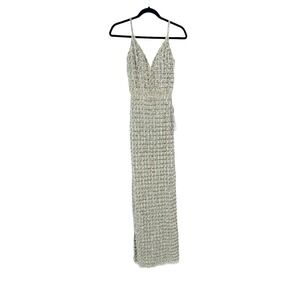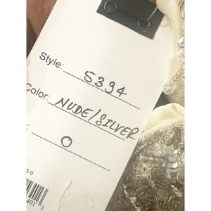 Mac Duggal Geometric Embellished Crystal Drop V-Neck Gown Nude/Silver Size 0 NWT