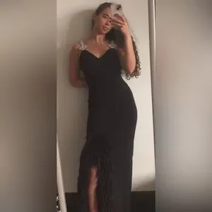 Auntie had it custom designed with the feathers on leg slit