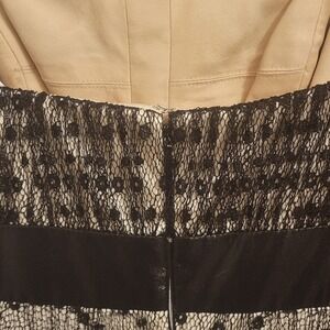 Size XS • Black & Creme • Strapless • Embellished Lace Overlay • Cream Lining • Square Neckline • Built in Corset with Boning at Bodice • Concealed Zipper Closure at Back • Subtle Black Accent Studs