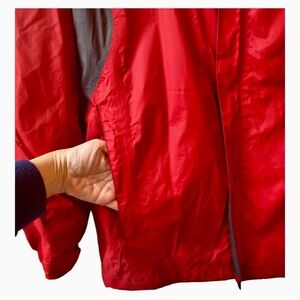 Columbia Mens S Red & Gray Zip Packable Rain Jacket Full Zip Hooded Windbreaker
