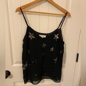 Elegant and graceful you're sure to fall for this lovely tank that hits every style point. Beautiful sparkle stars on this tank with adjustable straps. New with tags. Don't miss out on this one! Perfect for concerts!!