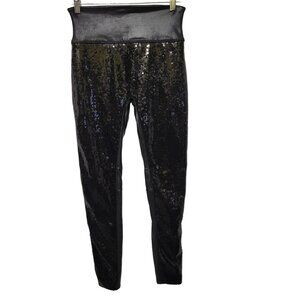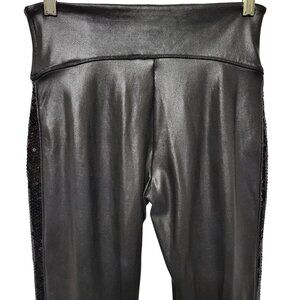 Spanx Size M Pants Faux Leather Front Sequin Skinny Pull On Leggings High Waist