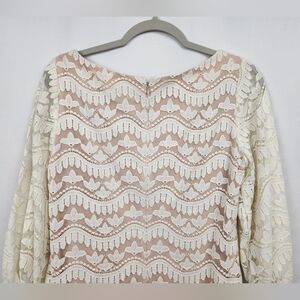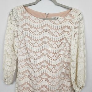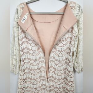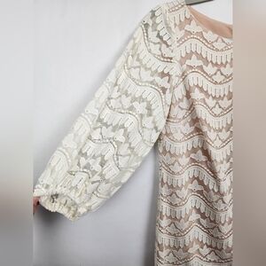 Off white lace dress with nude/tan lining 3/4 length Lace sleeve (unlined) with elastic