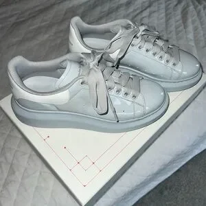 Low-top buffed leather sneakers in silver metallic Round toe. Tonal lace-up closure. Condition like new