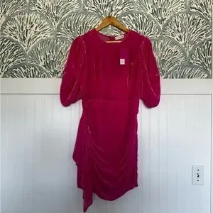 Rhode Pia Velvet Pink Minidress with Puff Sleeves in Women's 6. New with tags and in perfect condition! This is a rare color and dress that is no longer so rhode website. Designed for a slim fit in a mini length, featuring a puffed sleeve. Originally $475