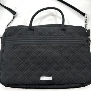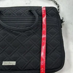 Shoulder strap is removable and mixed material silver link chain laced with black material and a sturdy black strap. Can be carried by handle too.