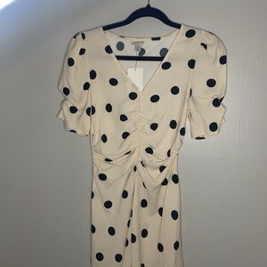 🐆NWT Crème with black polka dots short sleeve midi dress!