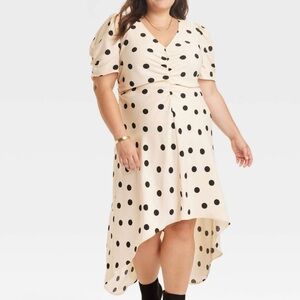 NWT Crème with black polka dots short sleeve midi dress!