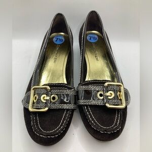 Etienne Aigner Loafers Suede Shoes Brown With Buckle Detail Women’s Size 7.5