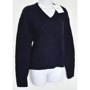 DIANE VON FURSTENBERG NWT CARMELLA V-NECK ALPACA/MERINO WOOL NAVY SWEATER.SIZE S