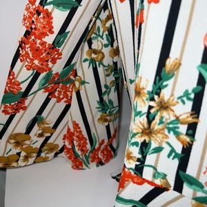 Zara Floral Striped Flowy Ruffled Tied Blouse